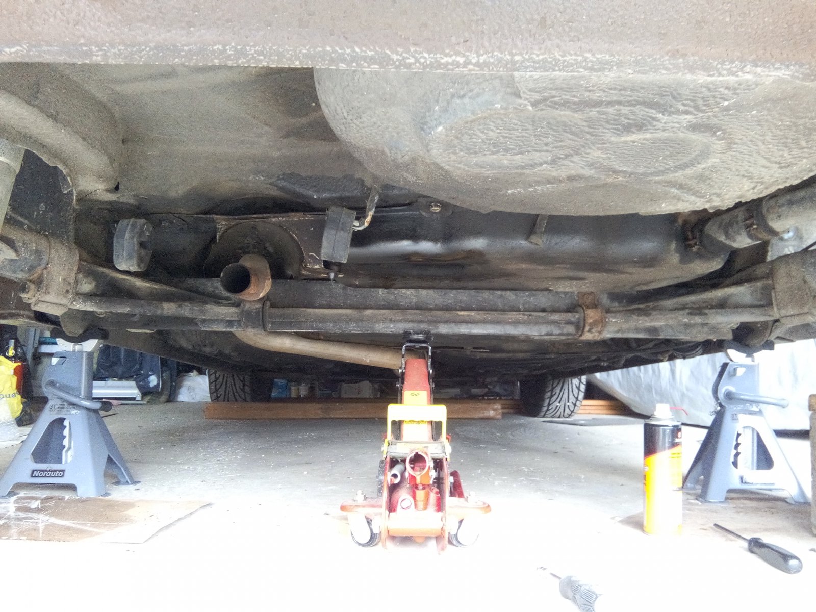 Pour le moment, je ne vois pas trop comment descendre plus, car les conduites de frein du coté droit et du coté gauche m'en empêche.