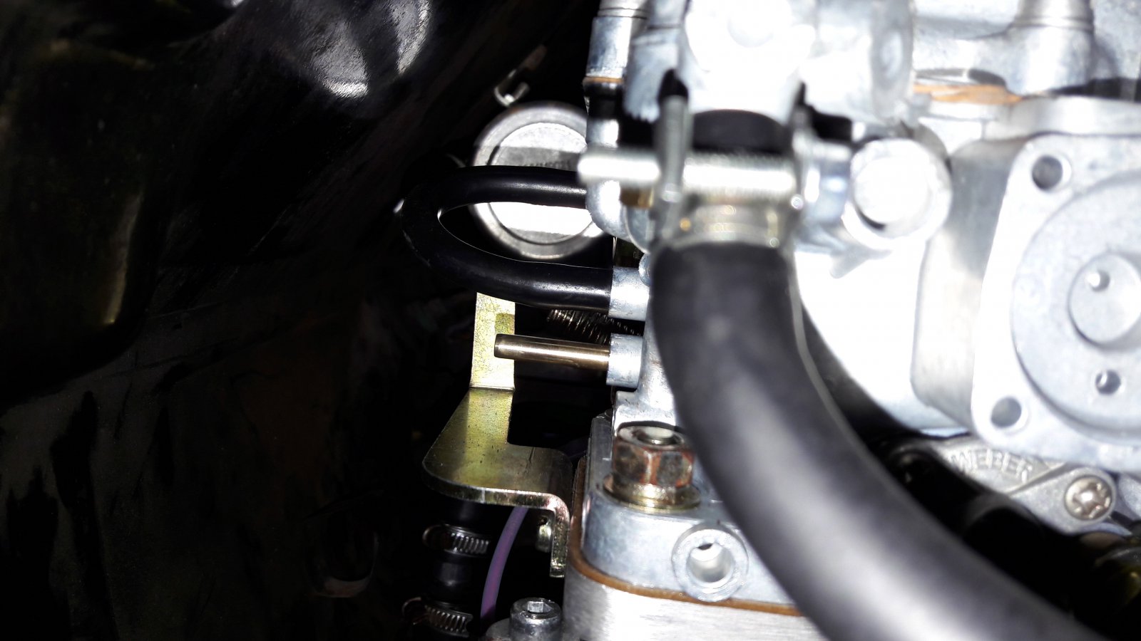 allumage calé a la lampe,durite de dépression,elle va de la durite du servo au distributeur,mais je ne l ai pas brancher au carbu car la tute derrière,c'est celle pour le filtre a air d'origine.par contre j ai le fil qui allait sur le devant de l'ancien carbu qui n'est pas brancher,c'est normal?