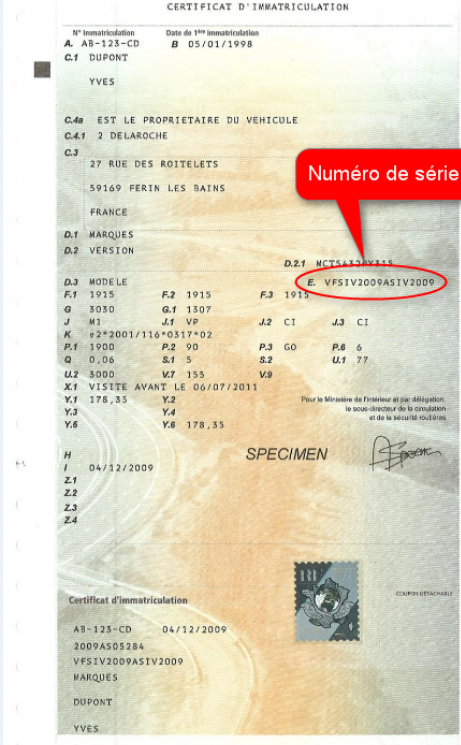 Bien évidemment toutes différences de numérotation entre le certificat d'immatriculation, la frappe à froid du pare-pluie, la plaque sur la traverse avant et l'étiquette coffre doit au mieux vous faire faire demi-tour et au pire vous placer en zone de méfiance absolue.