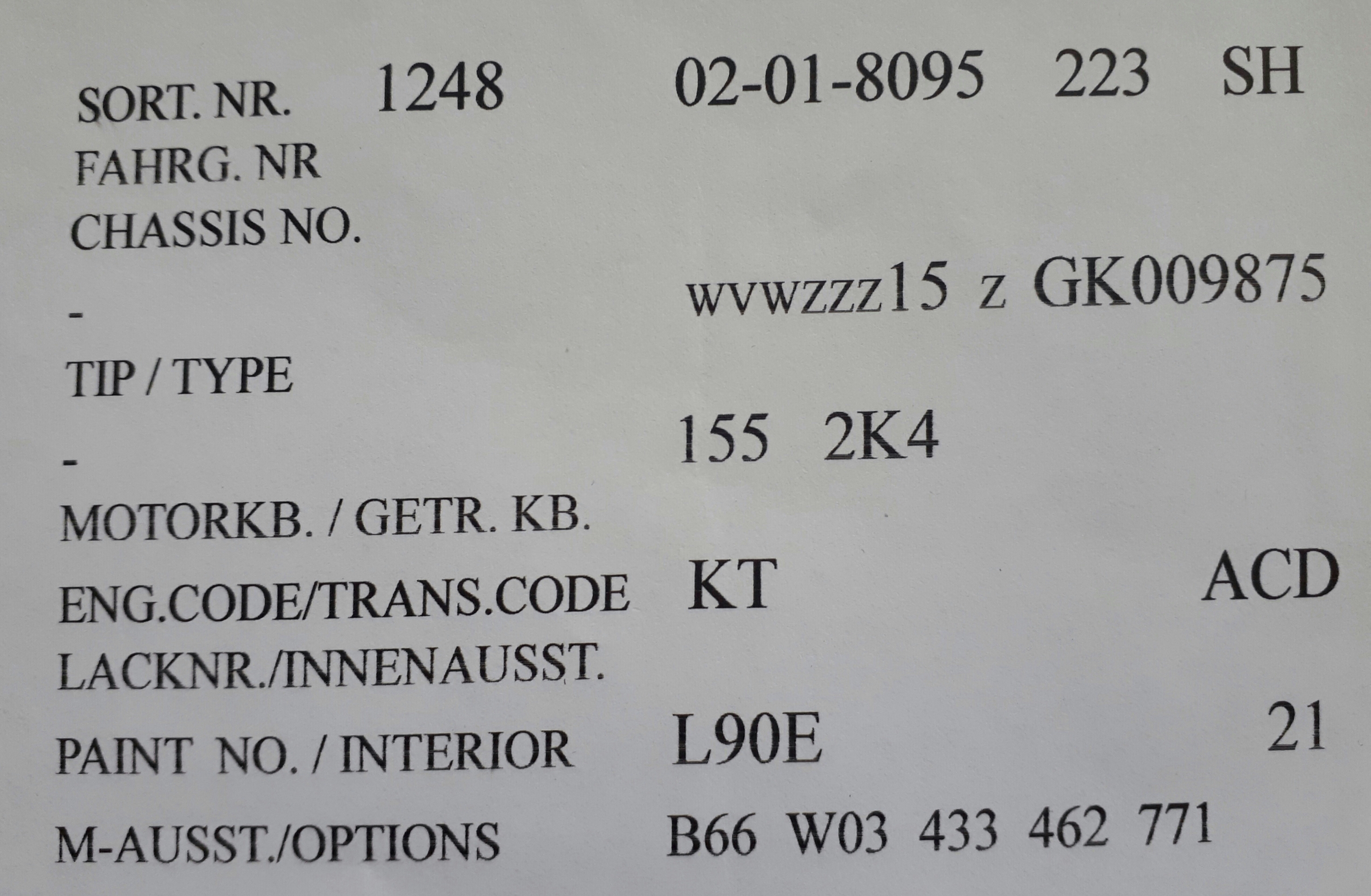 tip/ type WVWZZZ15ZGK009875