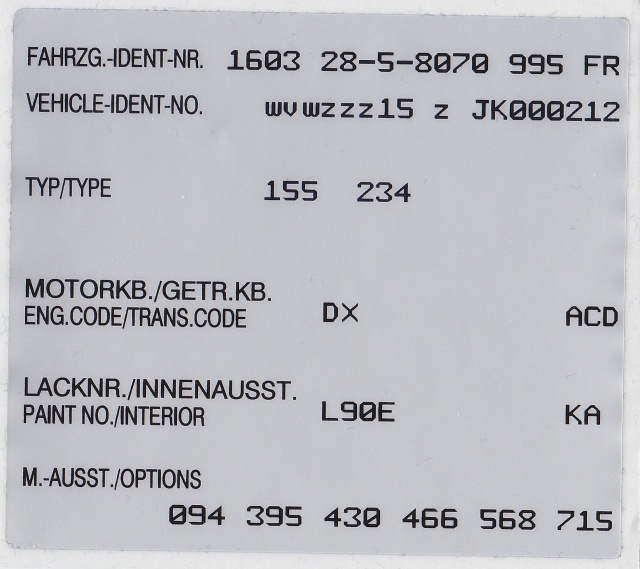 Tu peux retrouver des codes options et autres chez le concessionnaire VW ou en écrivant à VW France.