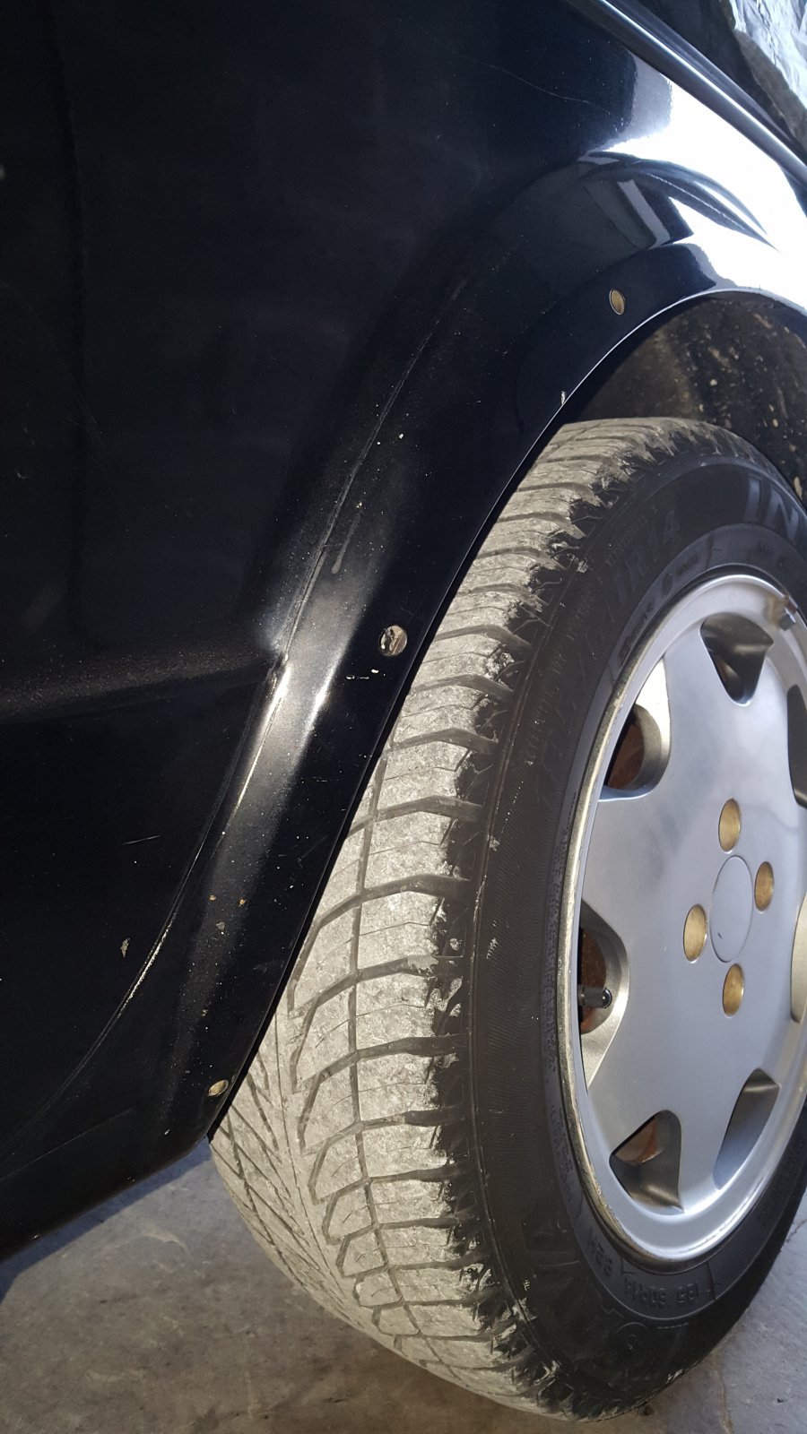 Pour les fixer il y a 3 trous dans le passage de roue mais le plus bas des trois, sur le bas de caisse, ne traverse pas les 2 épaisseurs de tole et je ne peux donc pas mettre la fixation correctement.....