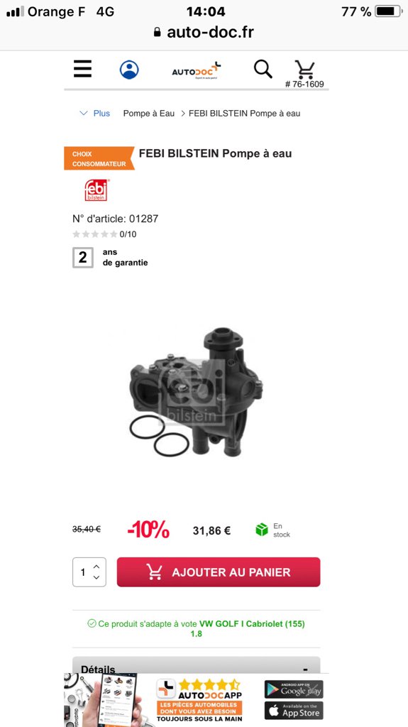 Mercicdrik915 a écrit :Febi-bilstein pour la pompe , rien d'autre.