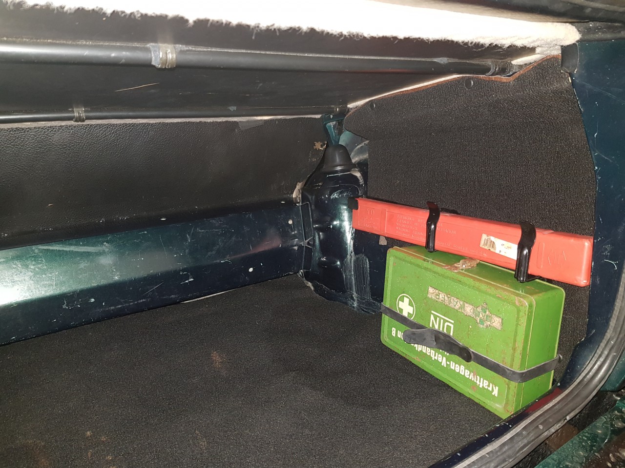 Seule une boîte de premiers secours à droite dans le coffre pouvait être présente avec option.