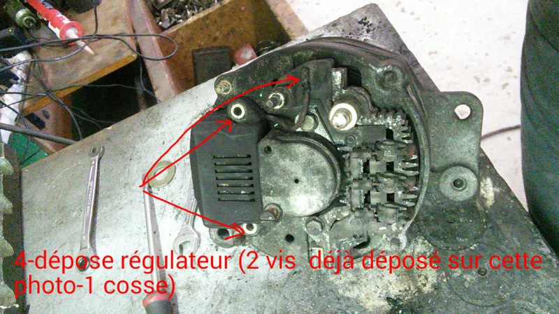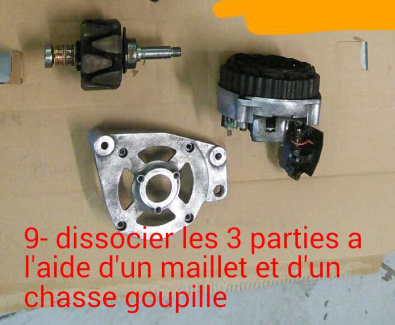 Pour le plus grand avec deux grand tournevis faire levier sous le roulement en prenant appuie sur le rotor. Pour le petit ,j'ai coincé le roulement dans un étau (et juste le roulement !) puis taper avec un chasse sur l'axe . Les réf sont donné pour ce type d alternateur ,sinon elle sont sur le roulement !
