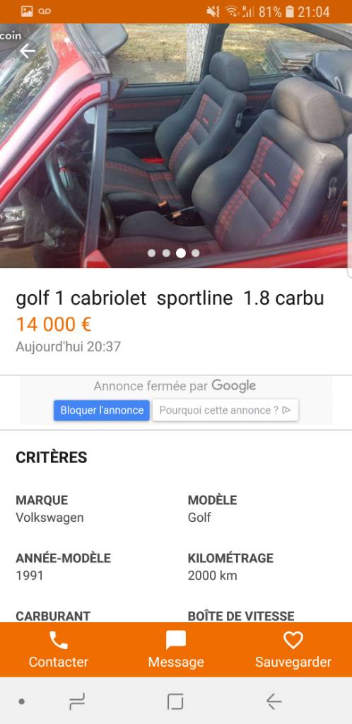 Re: Golf 1 Cabriolet...belles occasions au-dessus de 10.000€