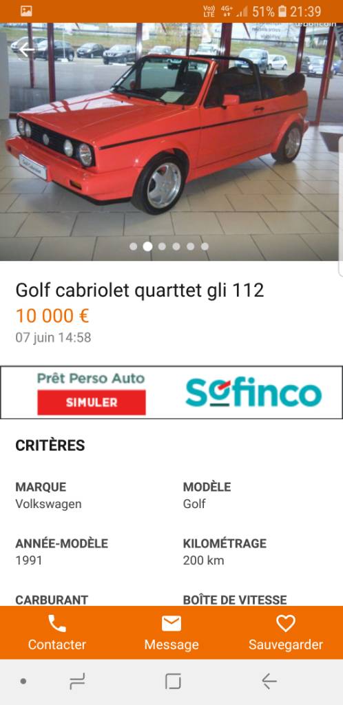 - Voiture : Golf 1 cabriolet