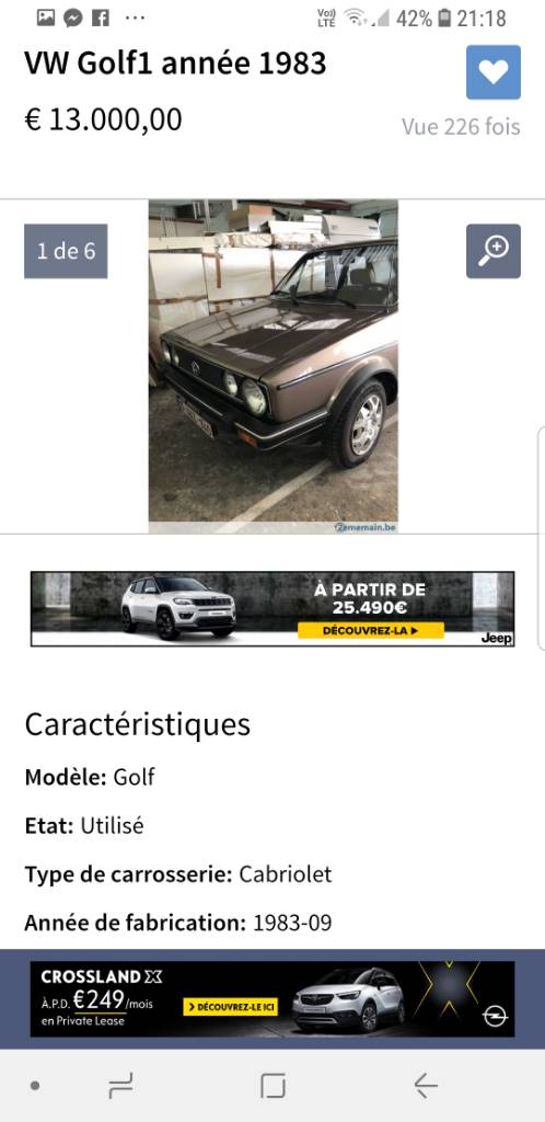 Re: Golf 1 Cabriolet...belles occasions au-dessus de 10.000€