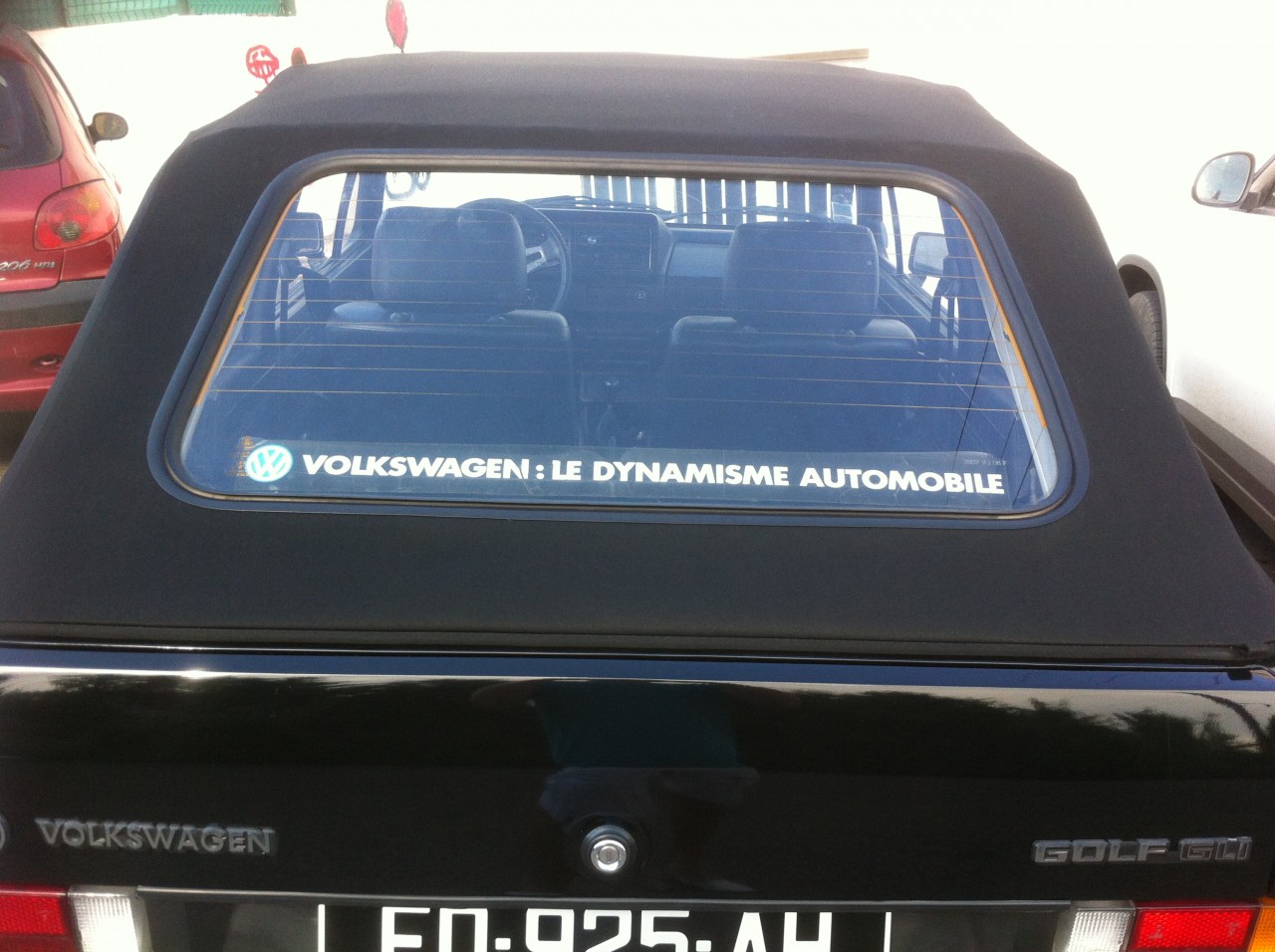 Bonjour, comme je ne trouvais pas d'autocollant noir "das original 1982" pour mon cab, j'ai refais un fichier à mon goût. Ma voiture étant noire, et d'une manière générale je trouve beaucoup plus discret et classe les stickers ton sur ton. Sur une vitre ça ressort grace à la lumière et au vide changeant qui se trouve derrière, alors que le blanc tape à fond dans l'oeil.