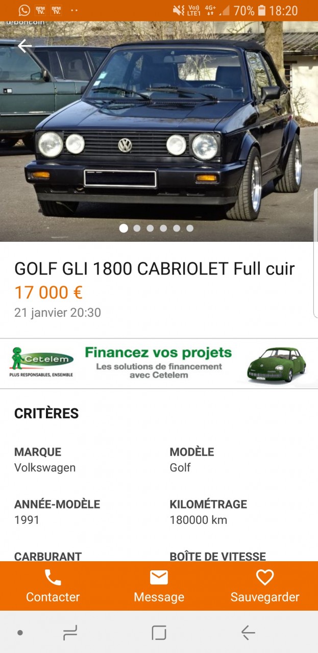 - Voiture : Golf 1 cabriolet