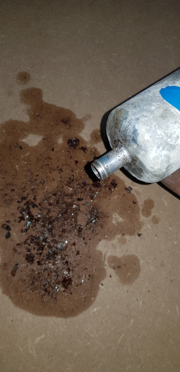 Voilà l'ancienne pompe avec des reste de réservoir rouillé.