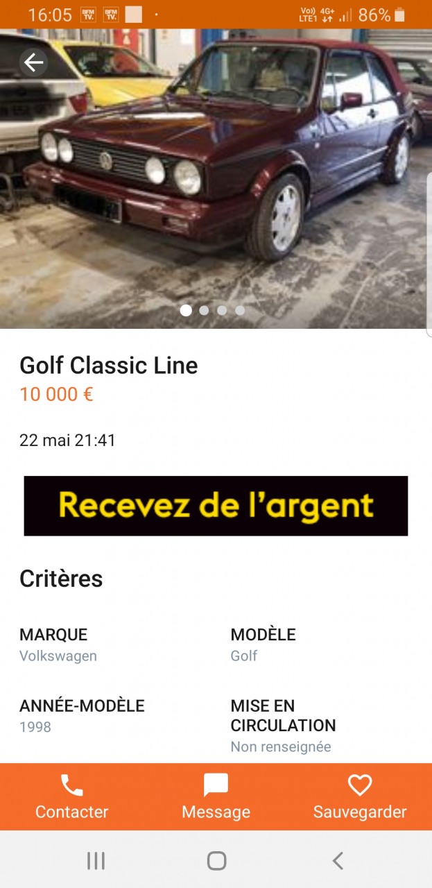 Voiture : Golf 1 cabriolet
