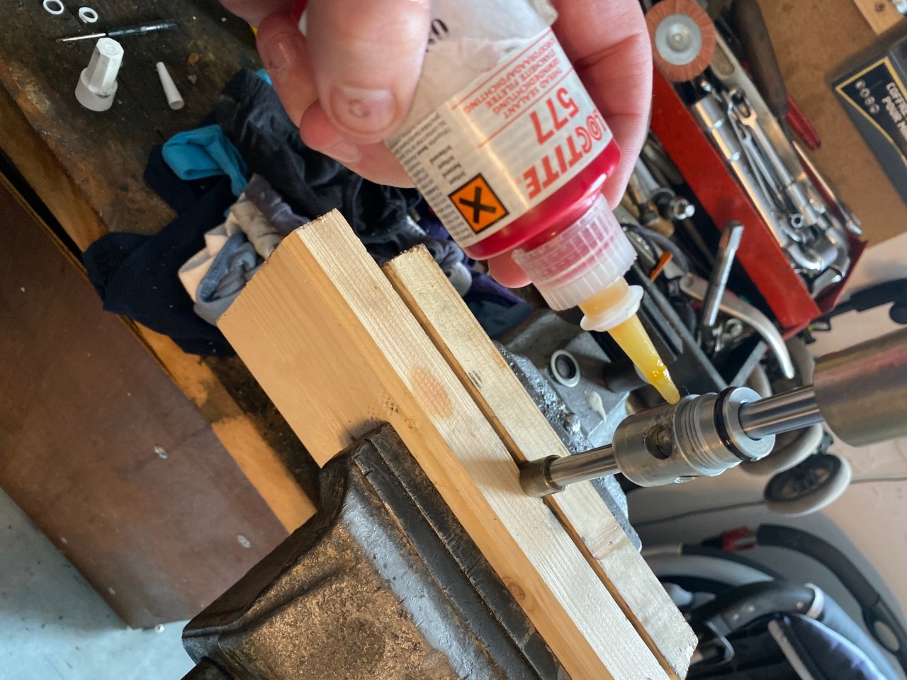 On coince le piston entre deux cales de bois dans l'étau , on le desserre à son opposé à l'aide d'un tournevis par exemple