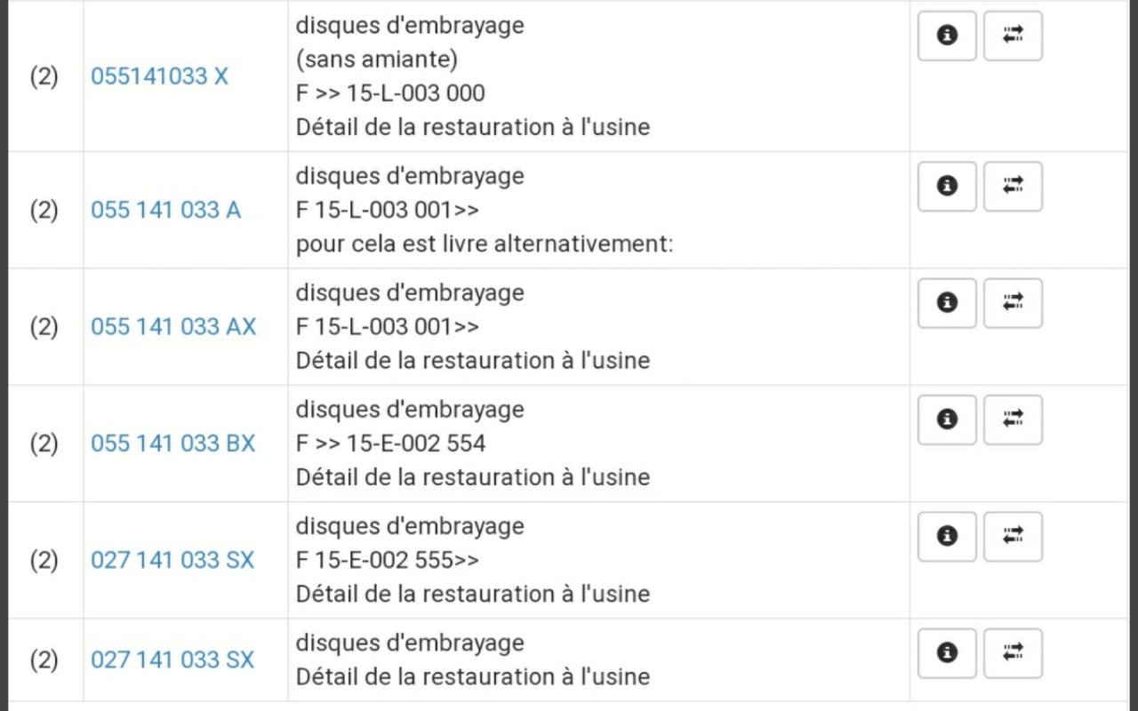 Je me servais chez VW, au magasin ils me fournissait toutes les pièces qu'ils donnaient à l'atelier.