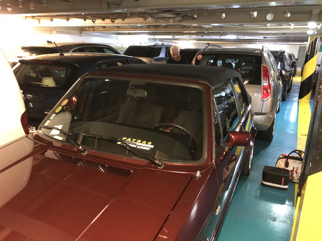 Bon dans le bateau les voitures sont garées au millimètre! On flippe pour son Kit Karmann mais au final ça passe toujours!