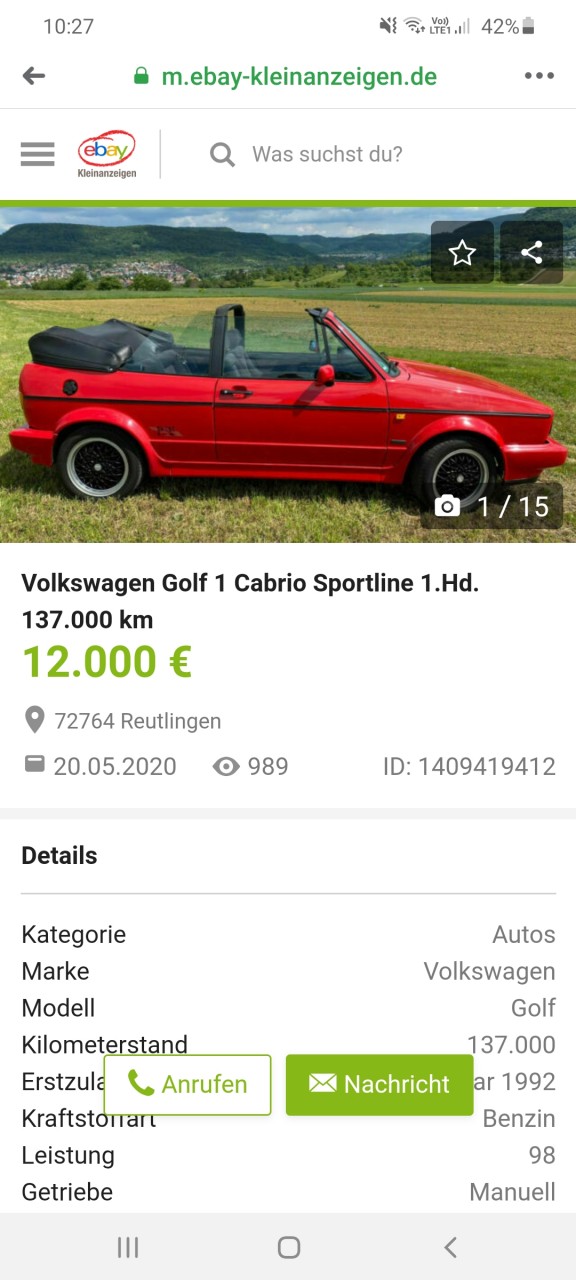 Re: Golf 1 Cabriolet...belles occasions au-dessus de 10.000€