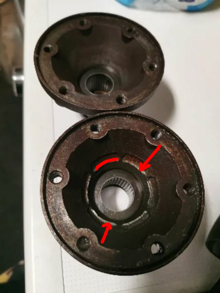 Par curiosité. Par expérience elles sont identiques des 2 cotés, néanmoins est-ce que tu avais un bruit suspect à ce niveau? Je t'invite à les placer chacune sur les cardans et voir s'il y a interférence entre les pièces
