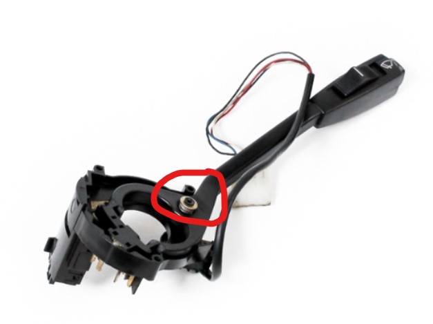 Je n'ai pas de MFA mais la branche pour cabriolet est un peu différente de celle de la berline qu'on trouve encore en neuf dans le commerce (fonction essuie vitre arrière sur les commodos neufs). Je me suis dit qu'en enlevant le rivet entouré on devrait y parvenir. Mais j'avoue que risquer de tuer mon commodo neuf pour une simple fonction en trop ça n'en valait pas la peine. Pour un commodo avec MFA ça peut se discuter.
