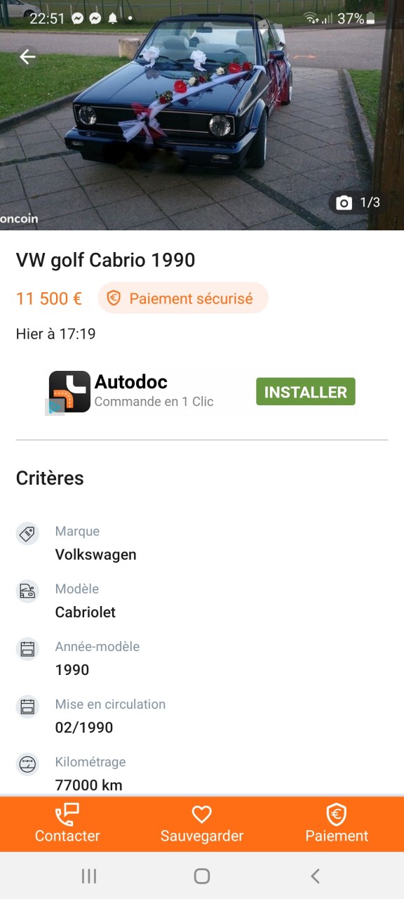 - Voiture : Golf 1 cabriolet