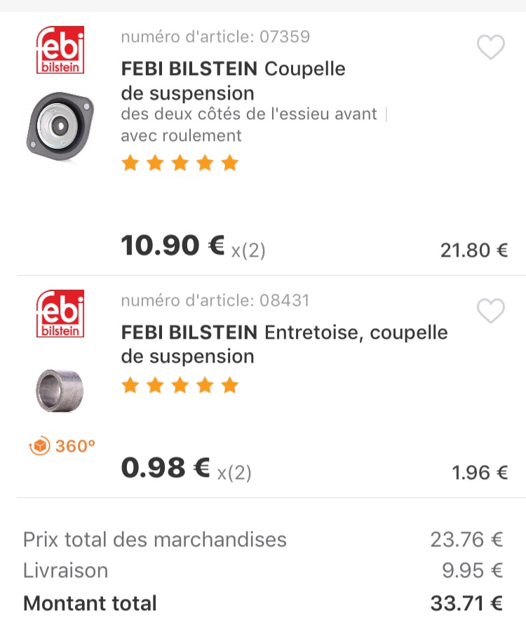 J’ai acheté les coupelles mais je vais suivre tes conseils et changer aussi les amortisseurs.