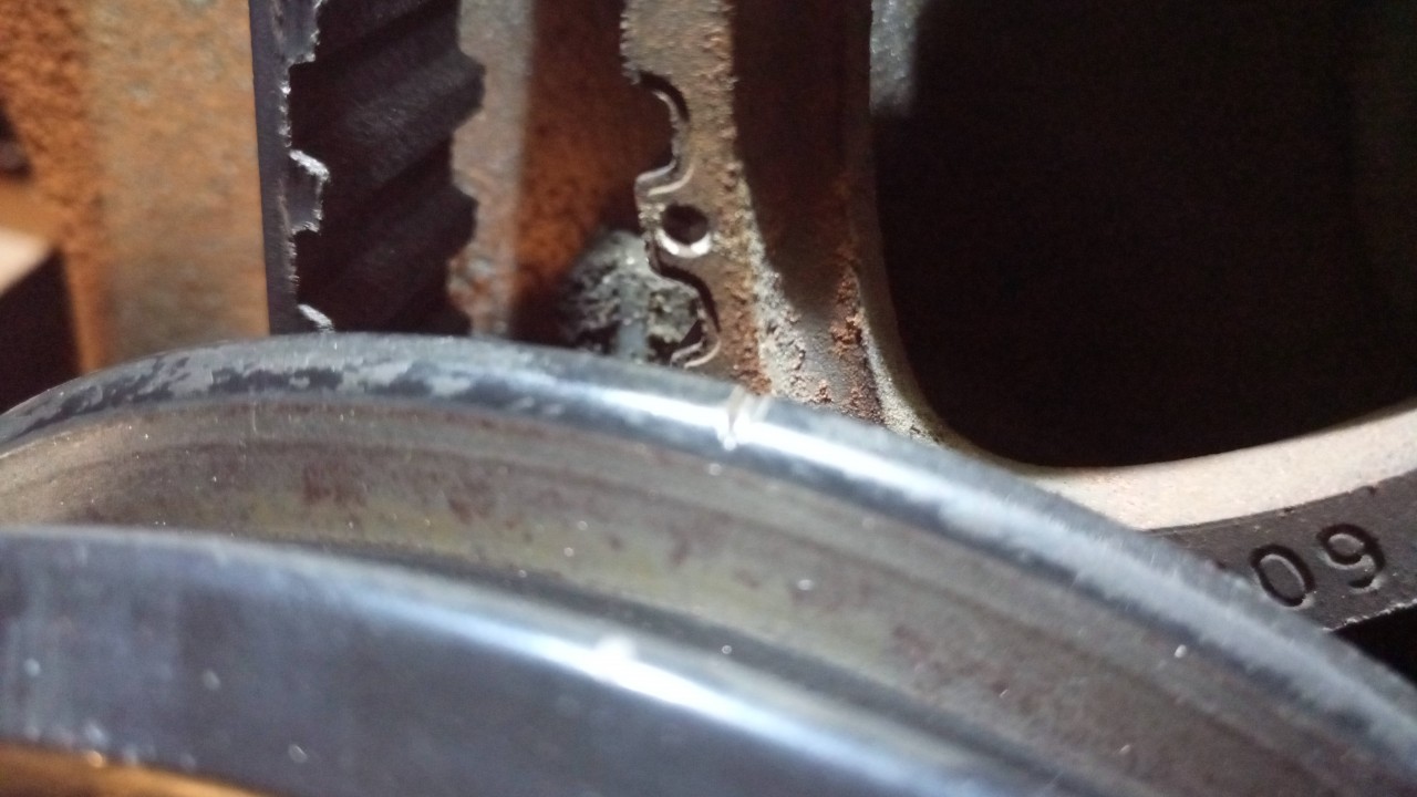 Avec la nouvelle poulie j'ai bien le repére "ot" et la courroie de distribution est maintenant bien dans l'axe.