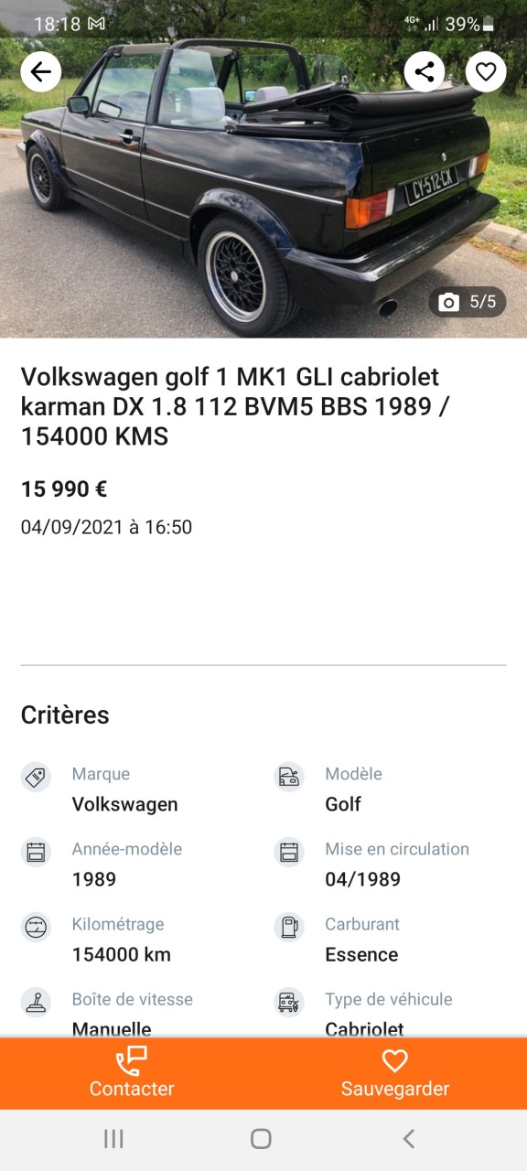 Voiture : Golf 1 cabriolet