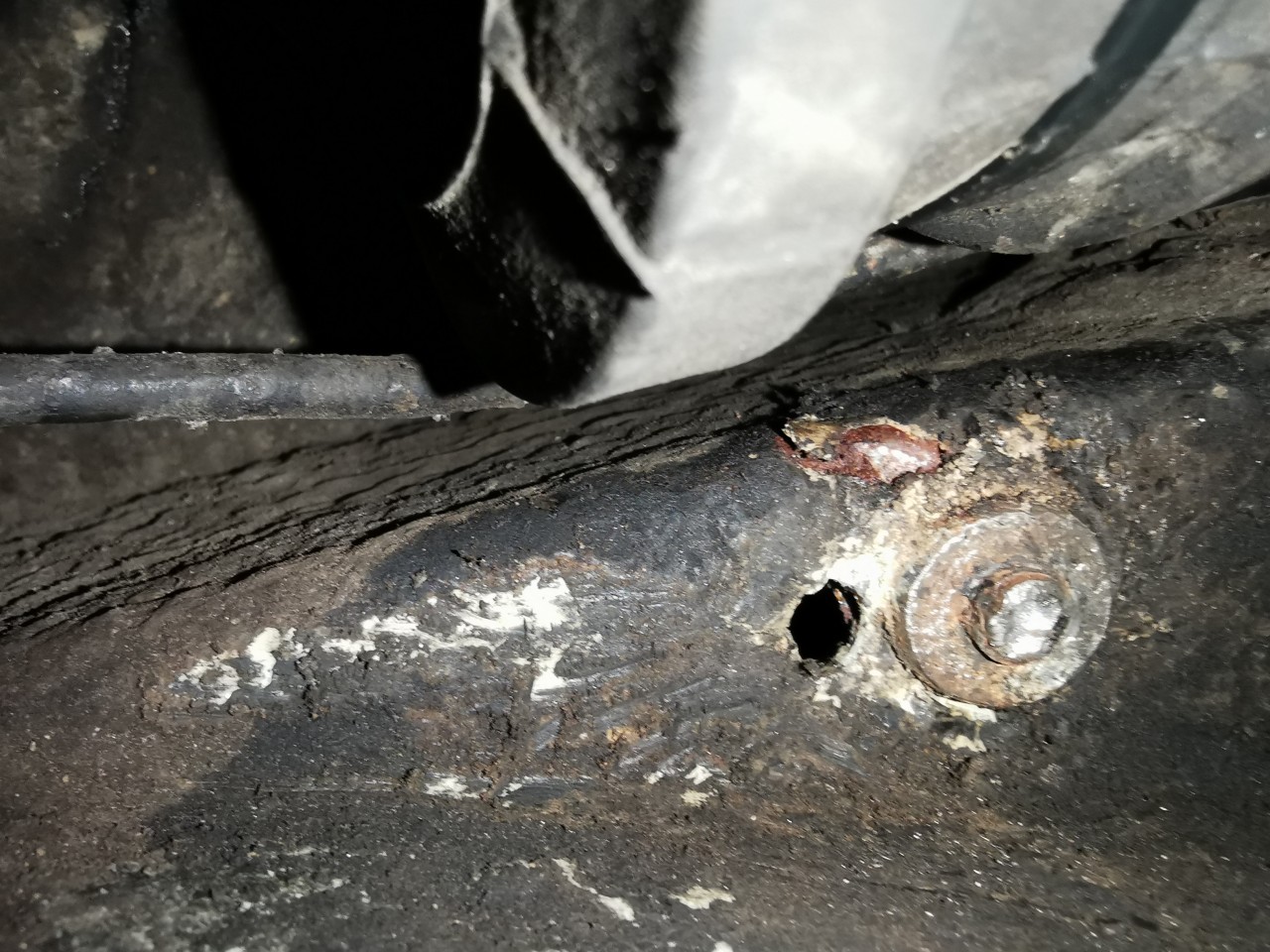 Sur ma voiture il reste un morceau de vis à l'emplacement prévu(photo 2), seulement je me demande si c'est un boulon fixé au chassis auquel vient se placer un écrou (comme sur la photo1)ou si c'est un boulon qui vient se visser sur le chassis (comme sur la photo 3) auquel cas je pourrais tenter de l'enlever et replacer la patte avec un nouveau