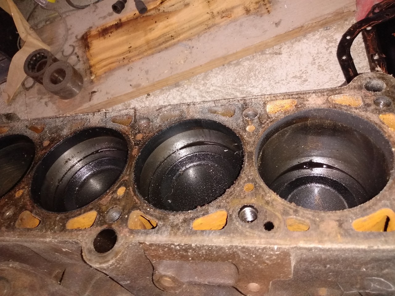 Pas de photos des pistons, ni de la hauteur, car il est déculassé et posé retourné.