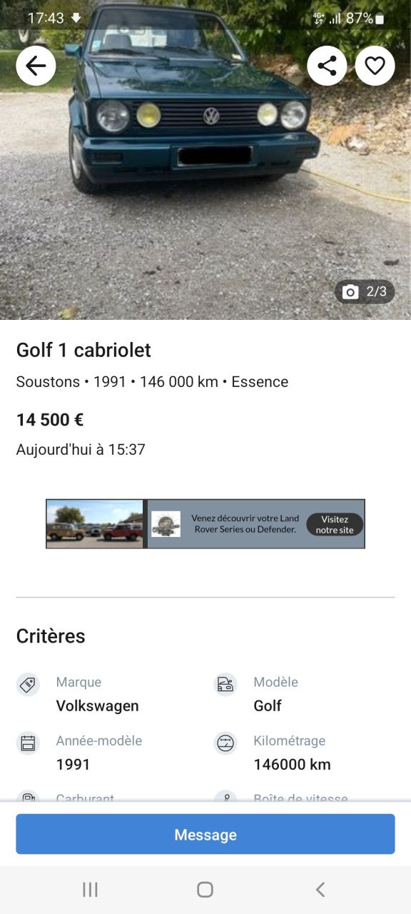 - Voiture : Golf 1 cabriolet