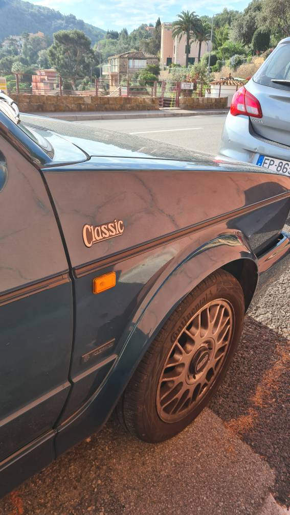 Bon la classic line a besoin d'une peinture complète (+ débosselage), d'un cellier pour les cuirs avant et vue le reste surement d'une capote et également d'un autoradio, pas encore croisé le proprio mais il a du avoir chaud aux fesses après qu'elles soient rester au soleil décapoté toute la journée
