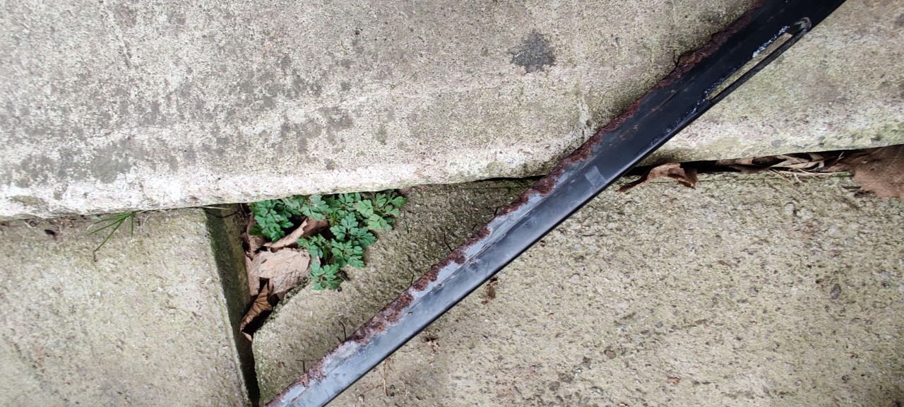 il a de la rouille superficielle sur certains endroits , on sent un manque de matière à d'autres , mais il n s'effrite pas comme de la poudre , il est toujours rigide (et légèrement galbé d'ailleurs ???), et pas fendu ou cassé .