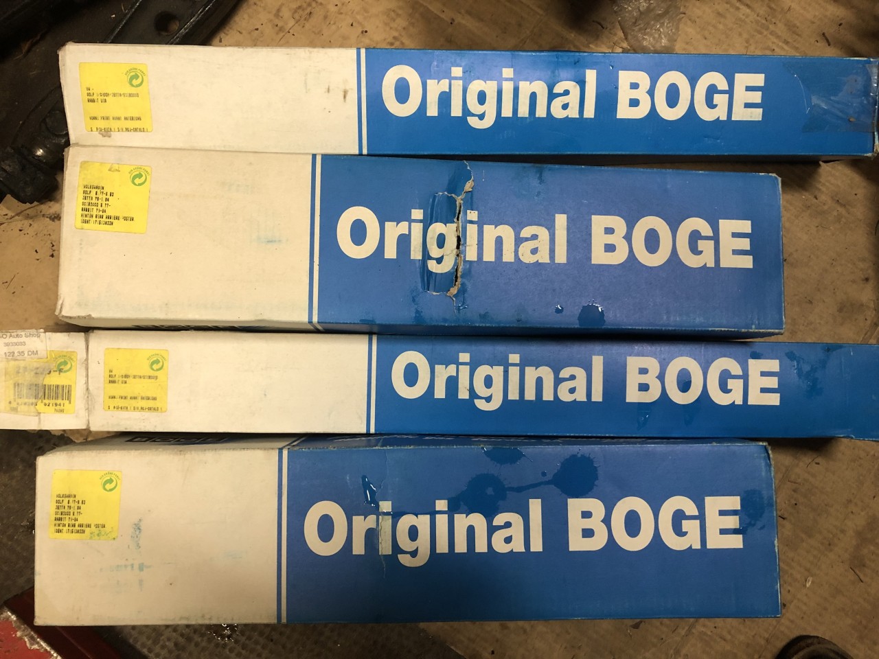 Je remonte des amortisseurs BOGE neufs issus d’un vieux stock avec des ressorts d’origine pour avoir un bon amortissement.
