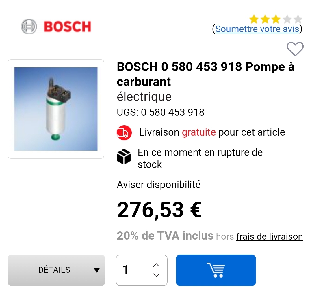 - Pompe à essence Bosch (867 906 091) 95€