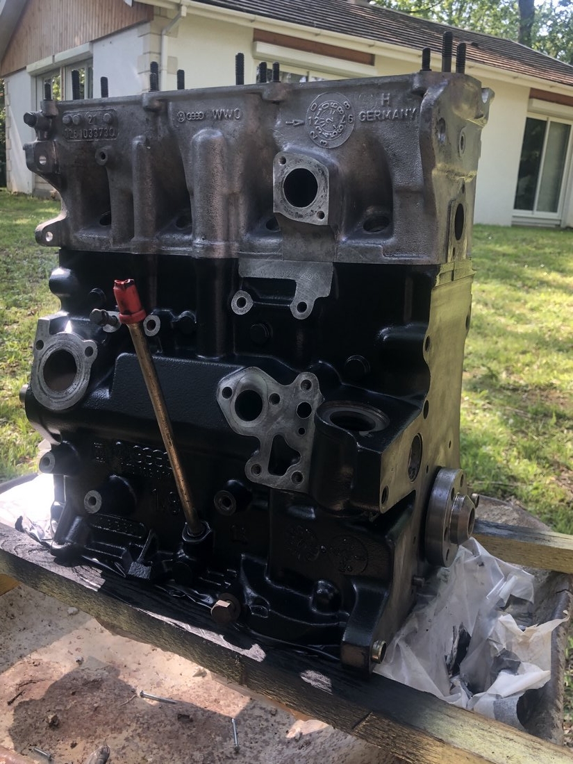 Beaucoup de pièces changées, bien sur des segments neufs, des coussinets de bielle neuf, un déglaçage des cylindres, un rodage des soupapes,... mais aussi "blanchiment" des portées sur marbre pour culasse, bloc, collecteurs d'échappement et d'admission.