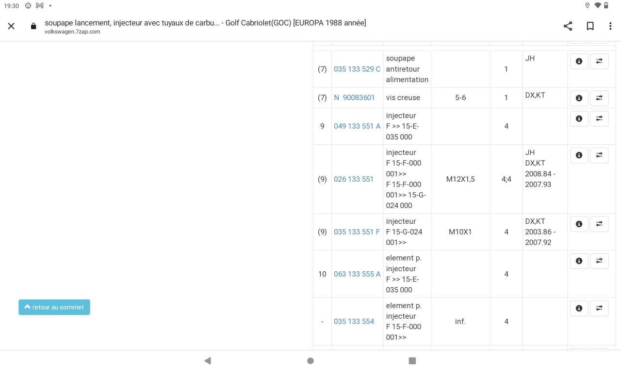 quelle est la ref vw sur tes injecteurs d'origine ?