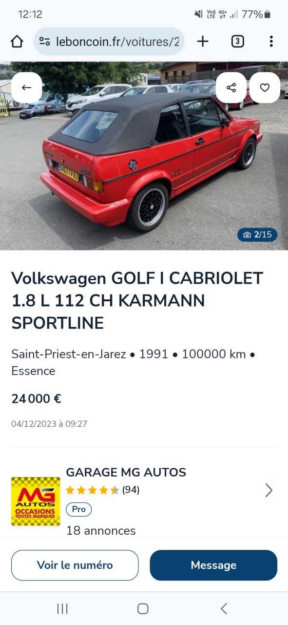 Re: Golf 1 Cabriolet...belles occasions au-dessus de 10.000€
