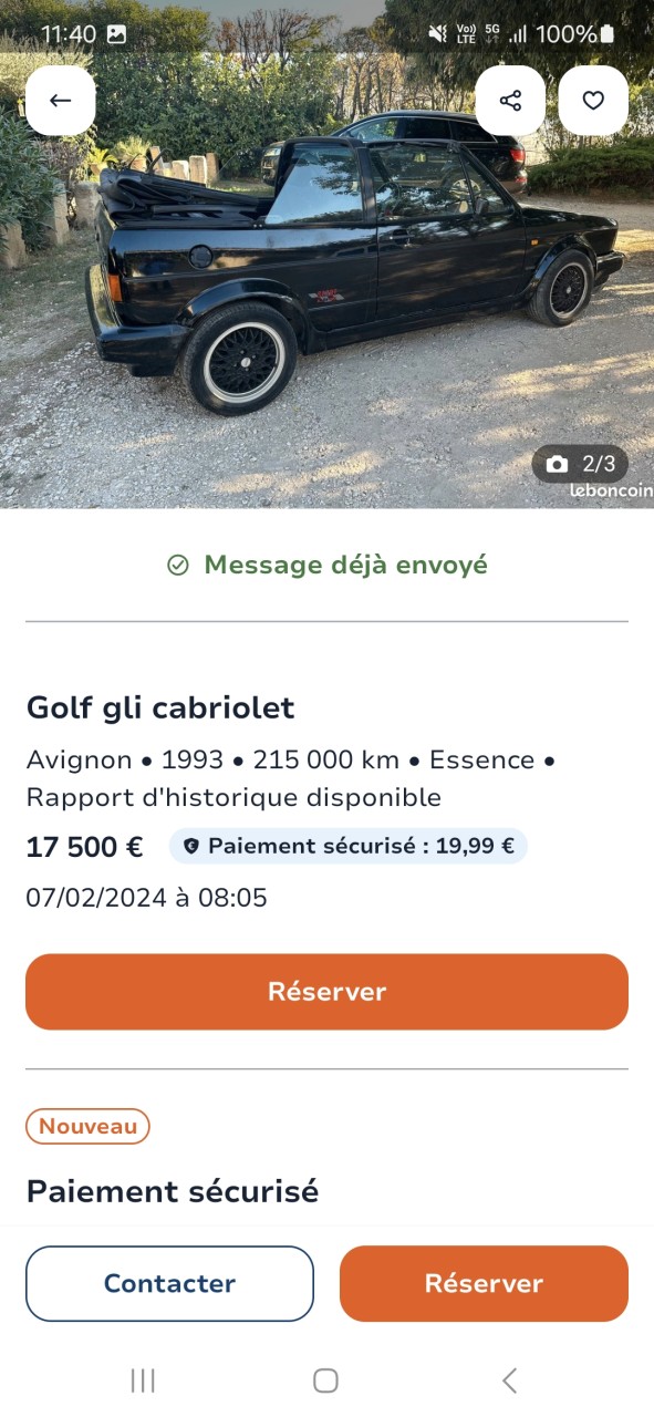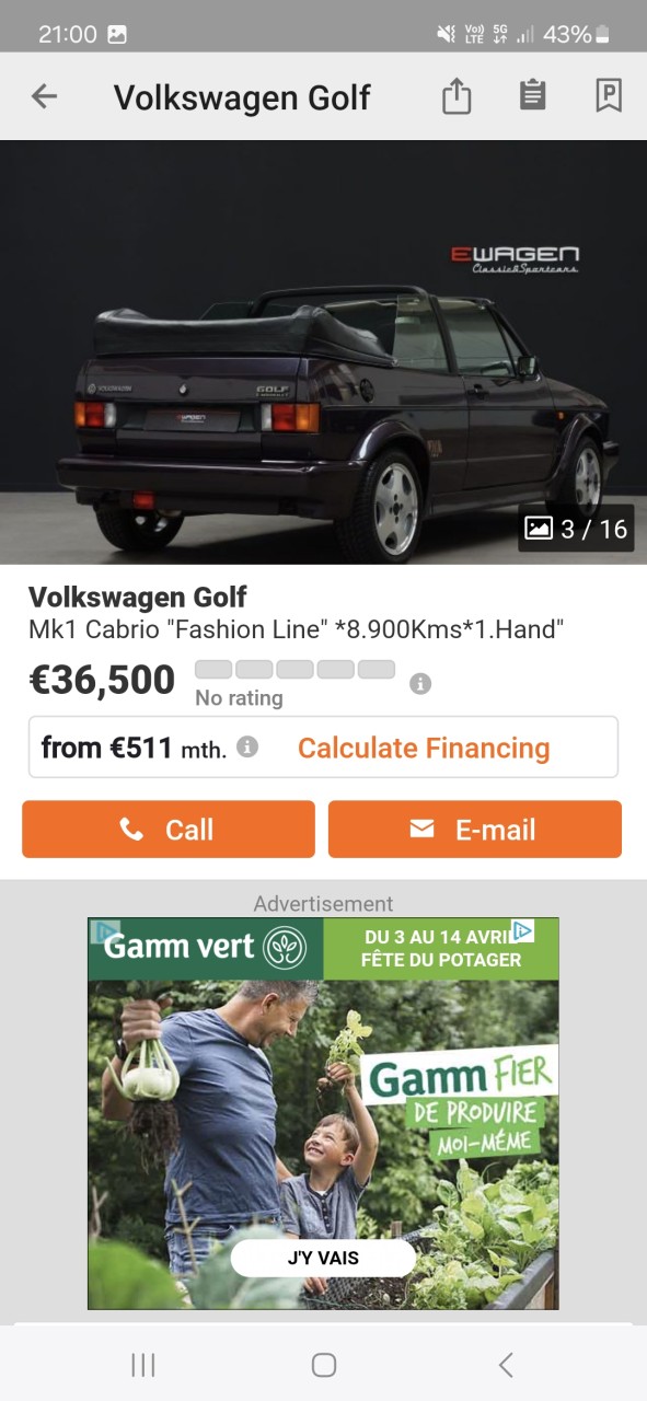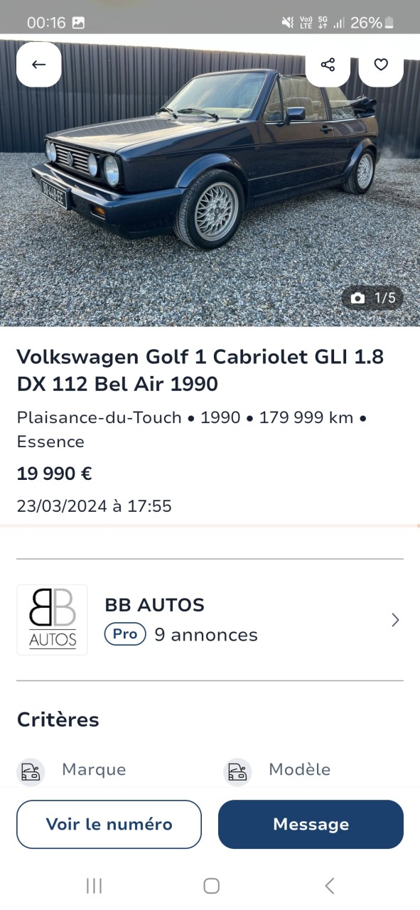Voiture : Golf 1 cabriolet