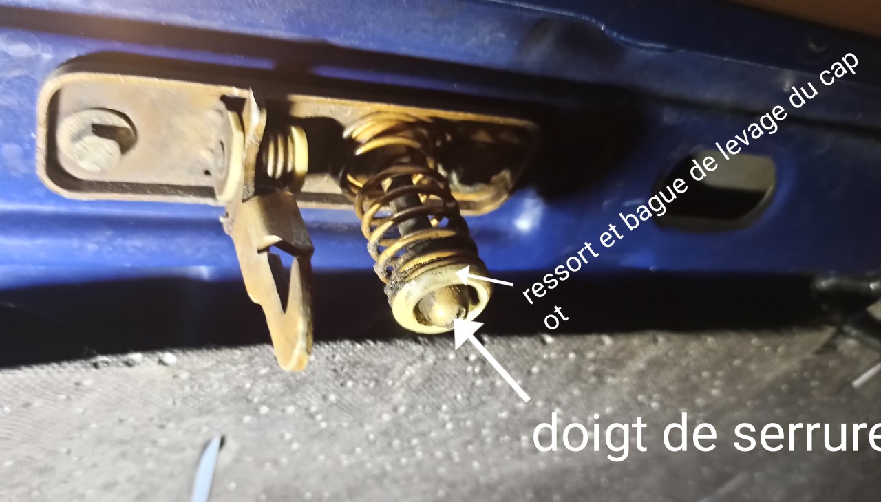 Bonjour Hugo. Démontez la serrure du capot pour pouvoir faire un test en ayant le maximum de visibilité .