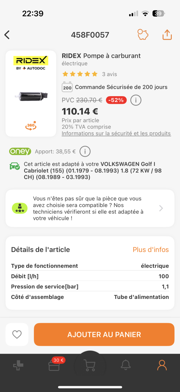 Re: Recherche pompe à essence golf 1 cabriolet swap KR