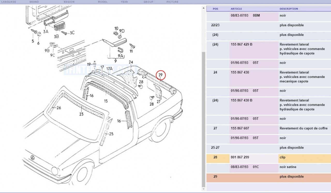 Oui, de mémoire le cache numéro 29 correspond bien à celui de l’arrière gauche (sous le feu). Bizarre qu’il ne soit pas listé dans l’ETKA, peut-être une référence spécifique à certaines séries.