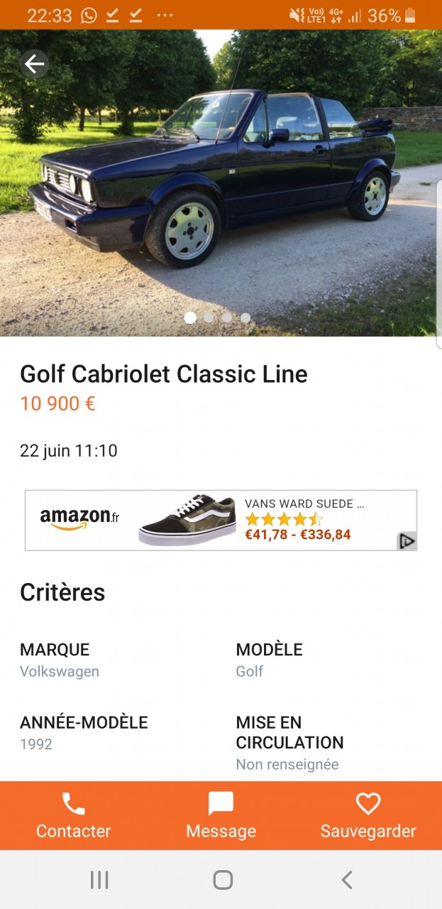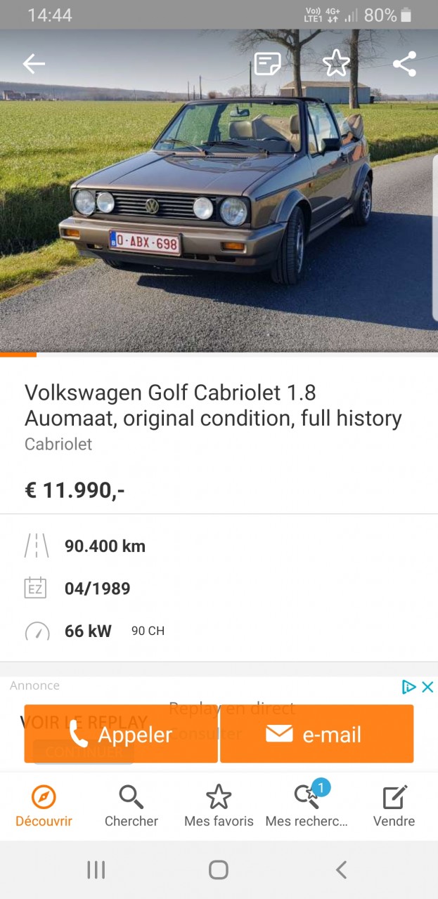Voiture : Golf 1 cabriolet