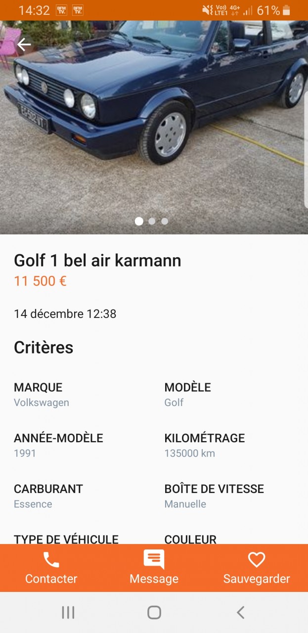 - Voiture : Golf 1 cabriolet