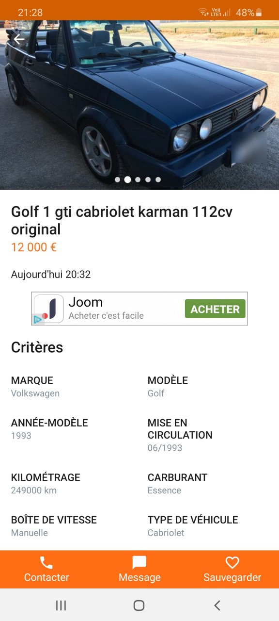 Re: Golf 1 Cabriolet...belles occasions au-dessus de 10.000€