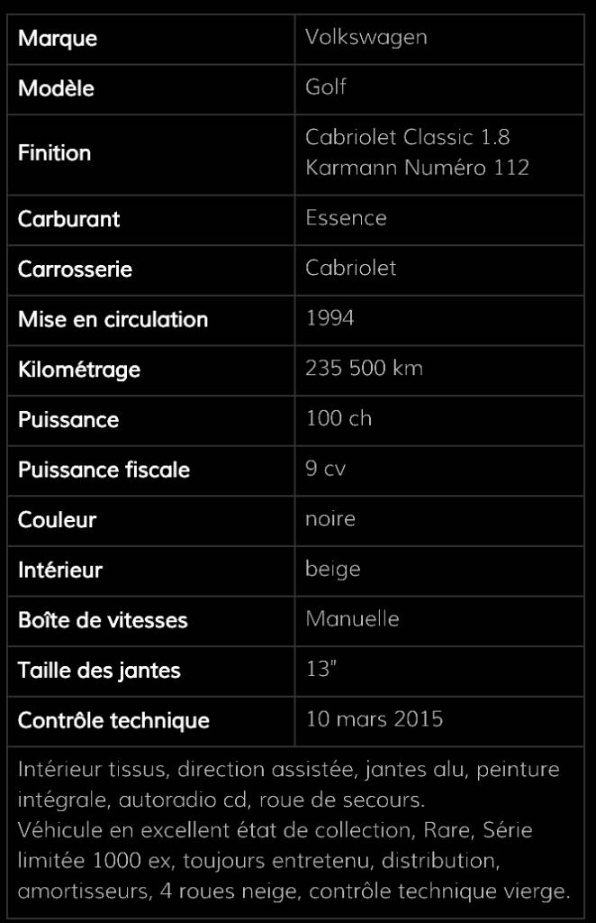 - Voiture : Golf 1 cabriolet