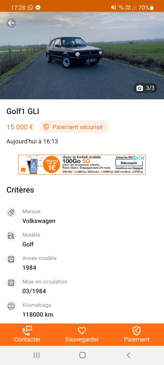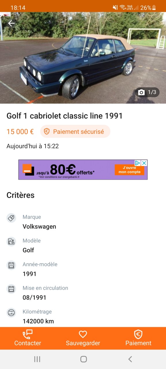 Re: Golf 1 Cabriolet...belles occasions au-dessus de 10.000€