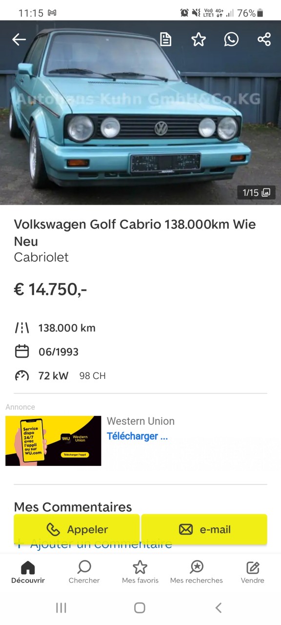 Re: Golf 1 Cabriolet...belles occasions au-dessus de 10.000€