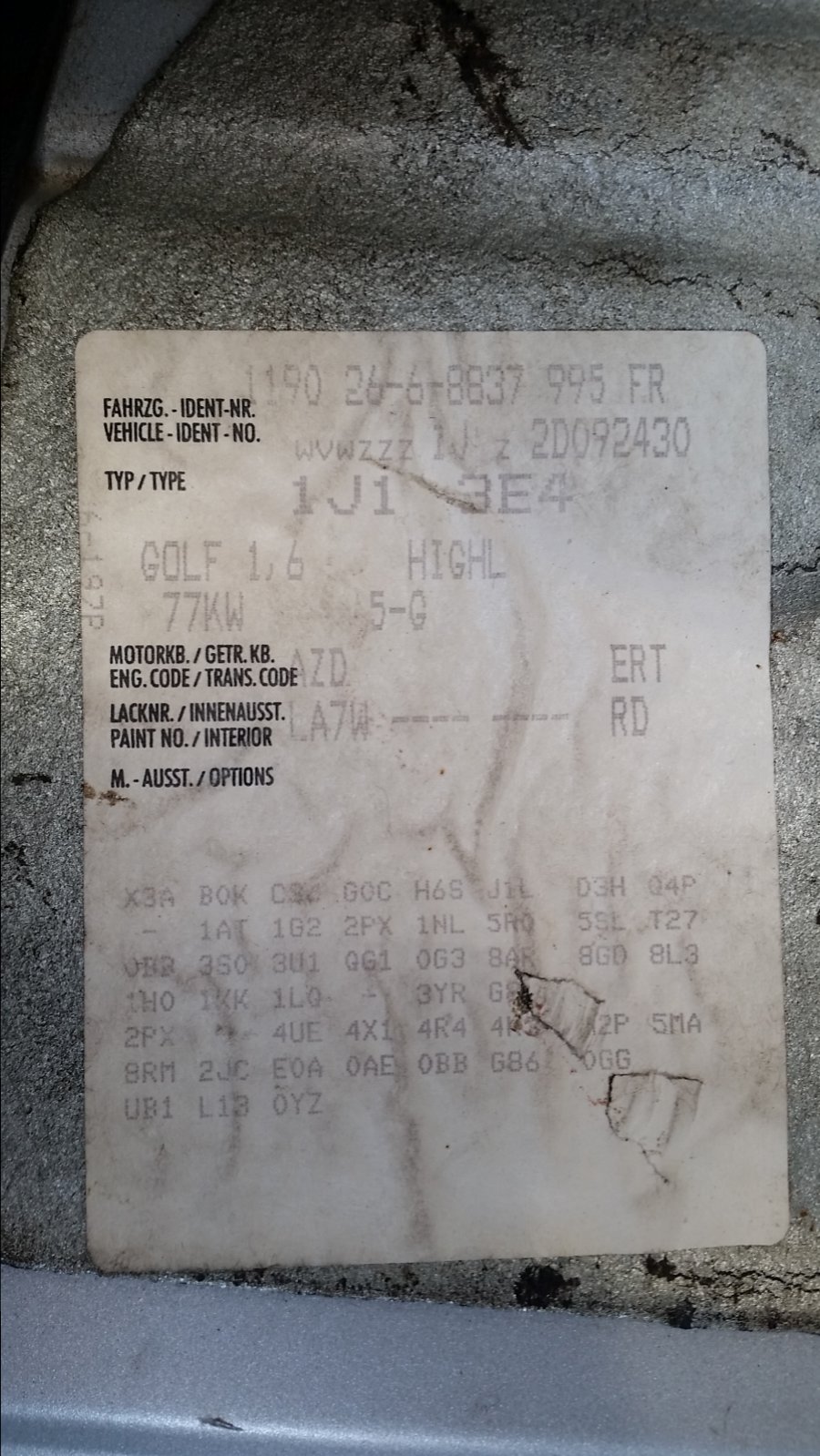 Son idée... "et si on regardait l'étiquette de coffre de sa Golf 4 et de ma Passat" ....