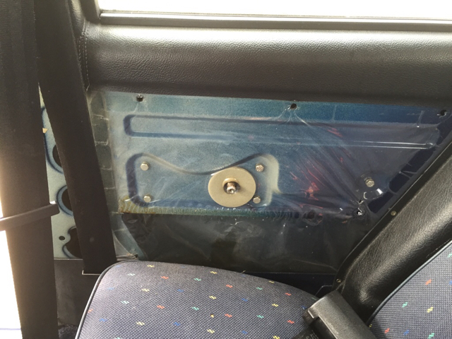 Première étape demonter les panneaux arrières, très simple, il suffit de dévisser la manivelle lève vitres, de retirer le joint au niveau de la porte et de tire délicatement pour sortir les clips de leurs logements.