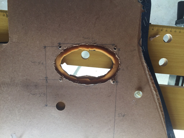 Deuxième étape lorsque vous avez sorti les panneaux il est nécessaire de faire 4 trous pour passer la grille de hp, je vous ai mis mes côtes sur une des photos afin que votre hp soit au bon endroit premièrement pour qu il y ai assez d espace pour l aimant et deuxièmement pour que la grille soit au bon endroit pour pouvoir se servir de la manivelle lève vitre