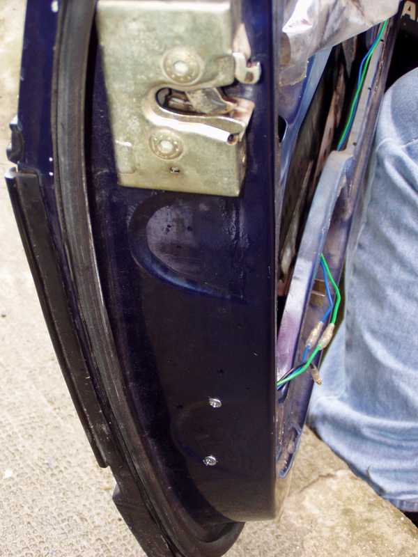 Si tu regardes bien sur les tofs, tu vois sur la tranche de la porte les deux vis de fixation. Le moteur est tout contre la porte. Premier trou un peu au pif, le second avec un autre moteur comme gabarit.